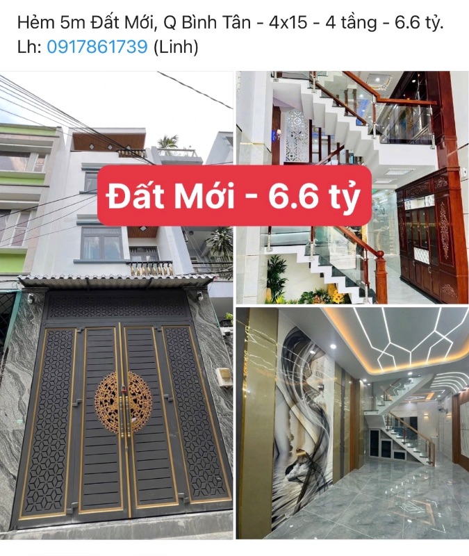 Bán nhà Hẻm 4m Đất Mới, Q Bình Tân - 4x12m - 4 tầng - 5.99 tỷ