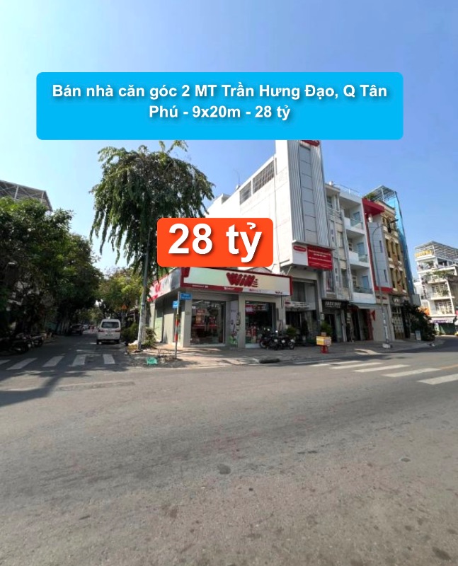 Bán nhà căn góc 2 MT Trần Hưng Đạo, Q Tân Phú - 9x20m - 28 tỷ